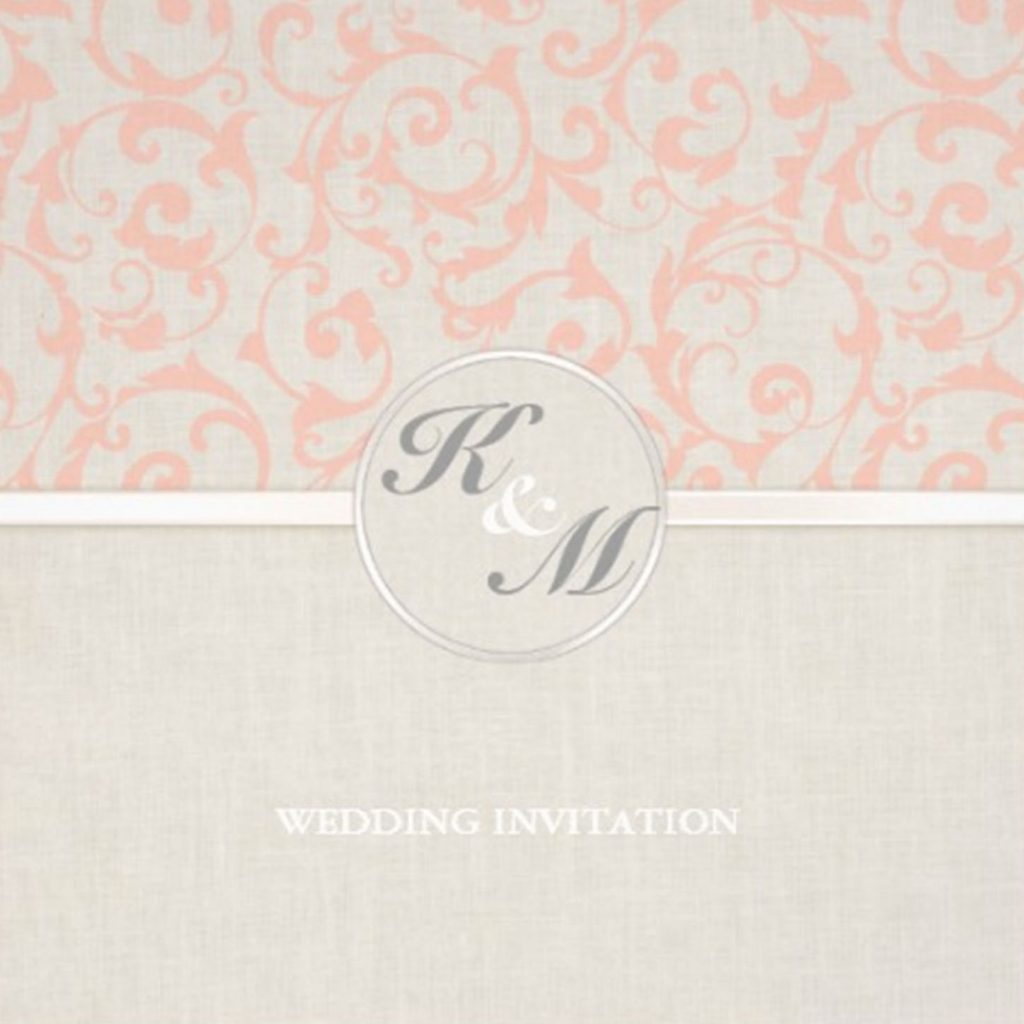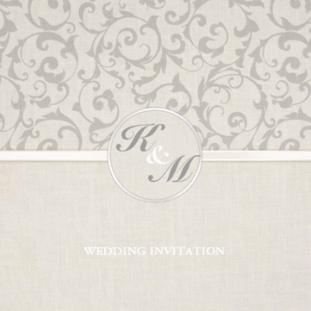 The SmartElegance wedding collection design features a texture of raw, fine weave linen enhanced with faded swirling motif, Satin ribbon topped with a seal of the couple’s initials. A classic backdrop for the perfect day.